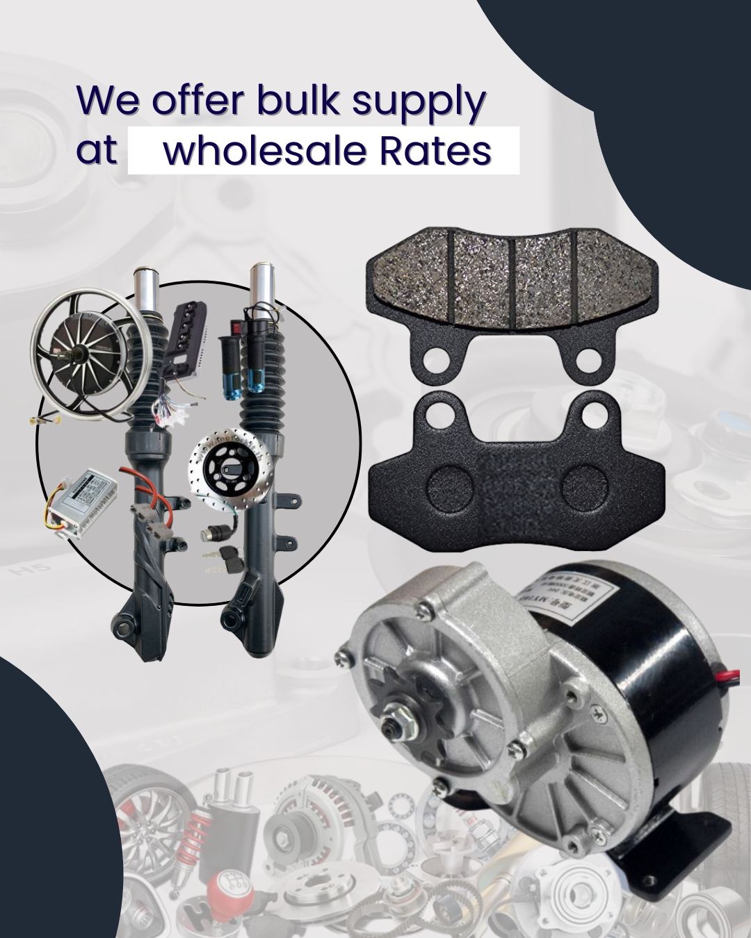 At [Your Company Name], we are committed to accelerating the shift toward sustainable transportation by providing high-quality, durable, and affordable spare parts for electric vehicles. From e-rickshaws and e-autos to electric scooters and bikes, we deliver a wide range of components to support India’s growing EV ecosystem.